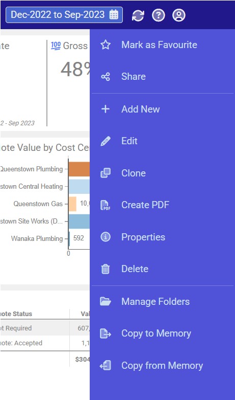 The Clone functionality allows all users to clone an existing dashboard to a user dashboard. This will be useful if you wish to view and make changes without editing the global dashboard