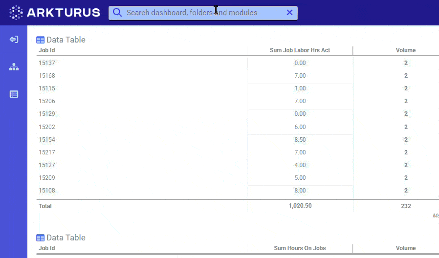 Easily use the search bar to instantly navigate to dashboards, folders, and modules from anywhere on the site.